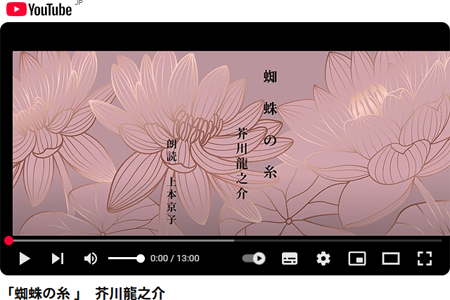 芥川龍之介作「蜘蛛の糸」の朗読をYou Tubeにアップしました。